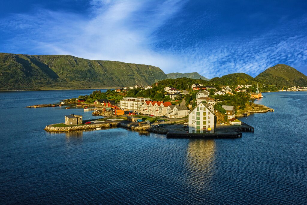 Today, you’ll hop on a 1.5-hour flight to Ålesund, an elegant town on Norway’s western coast. Pick up your rental car and get settled at your hotel, then spend 1.5 hours this afternoon exploring the town at your leisure. Stroll through the center and marvel at the heavy presence of Art Nouveau architecture resulting from rebuilding efforts following a devastating fire in 1904. Walk along the seaside, and you’ll pass Dronninges Sonias Plass (Queen Sonia’s Square), the local history museum KOBE, and the Sunnmøre Museum, showcasing the city’s maritime heritage.