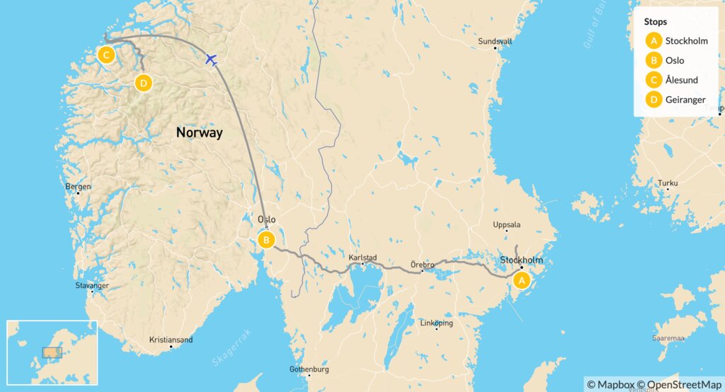 Map of Scandinavian Fjord & Hiking Summer Adventure – 10 Days
