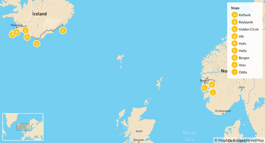 Map of Scandinavian Saga: Iceland & Norway Summer Road Trip – 14 Days