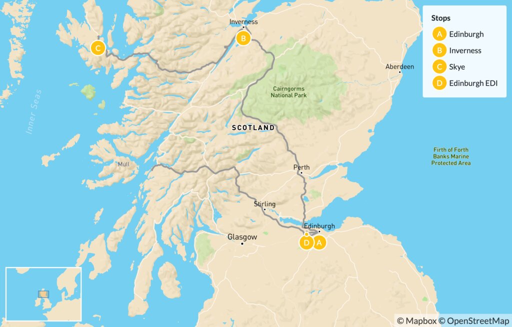 Map of Scenic Scotland: Edinburgh, Inverness & Skye – 7 Days