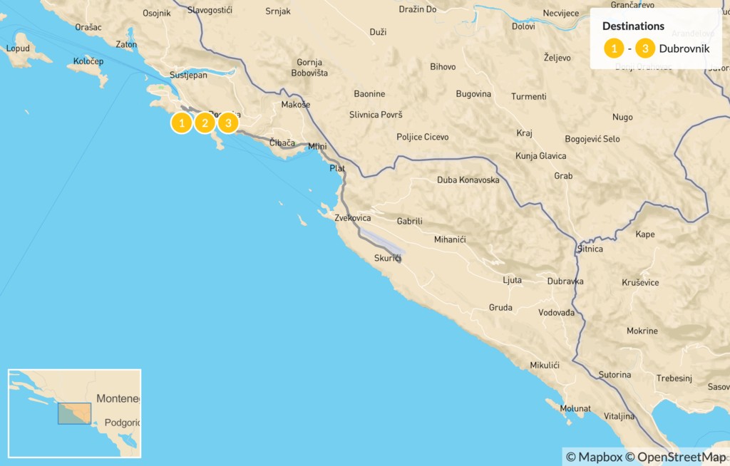 Map of Scenic Southern Dalmatia: Dubrovnik & Konavle – 4 Days