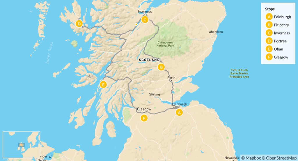 Map of Scotland City, Highland & Island Road Trip – 12 Days