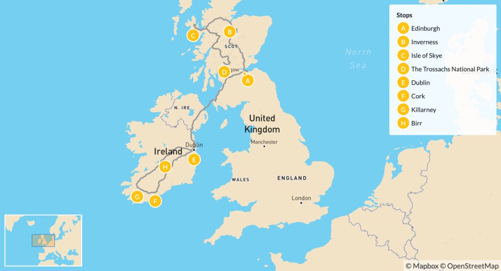 Map of Scotland & Ireland Road Trip: Cities, Castles & Parks – 11 Days
