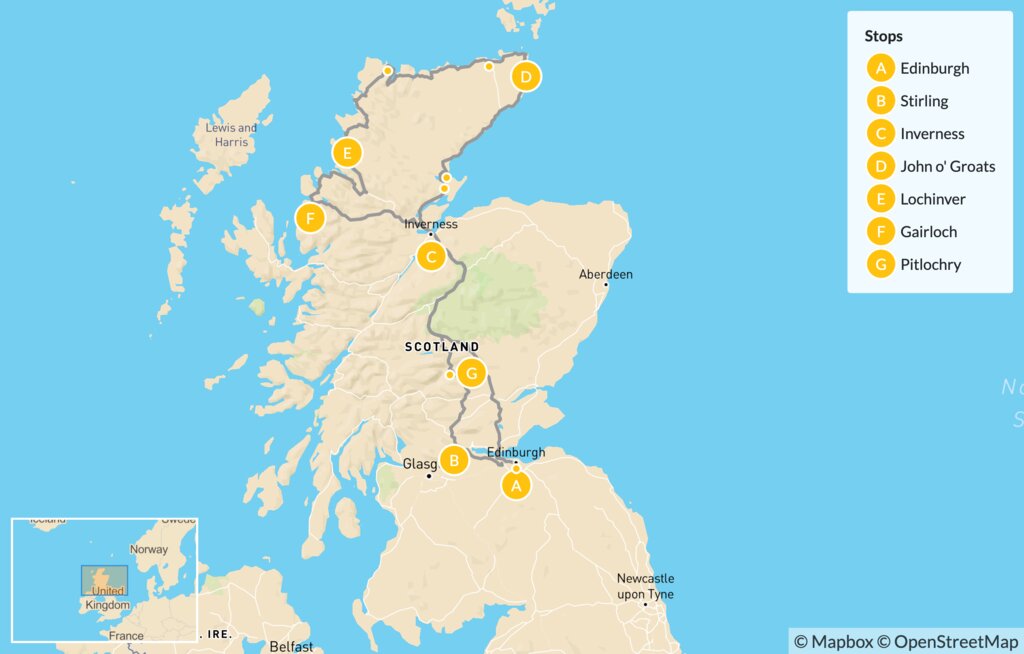 Map of Scotland North Coast 500 Road Trip – 8 Days