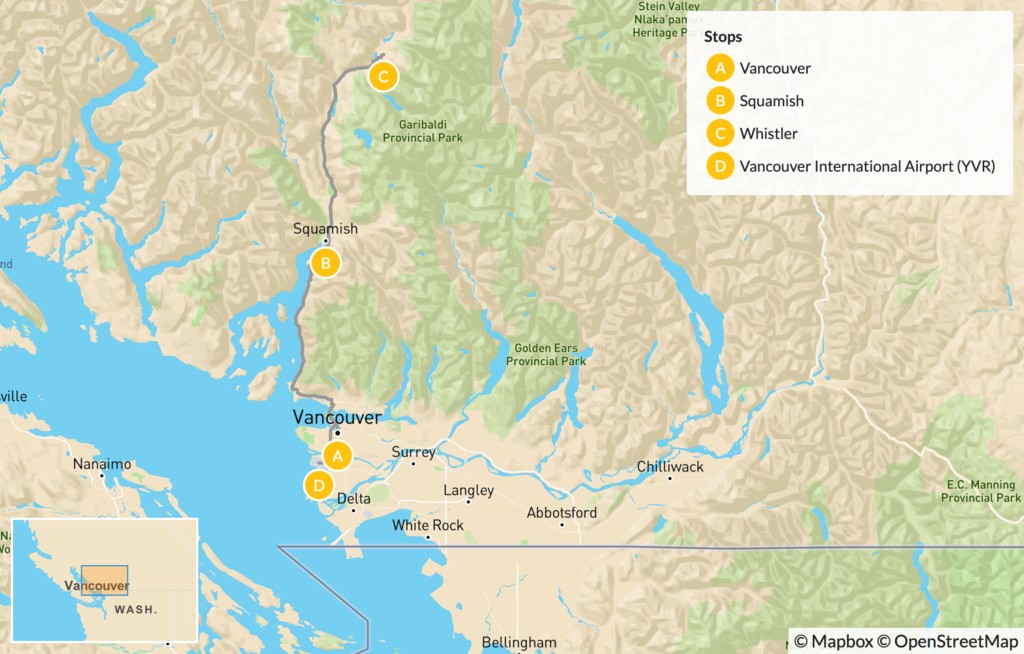 Map of Sea-to-Sky Highway: Vancouver to Whistler – 5 Days