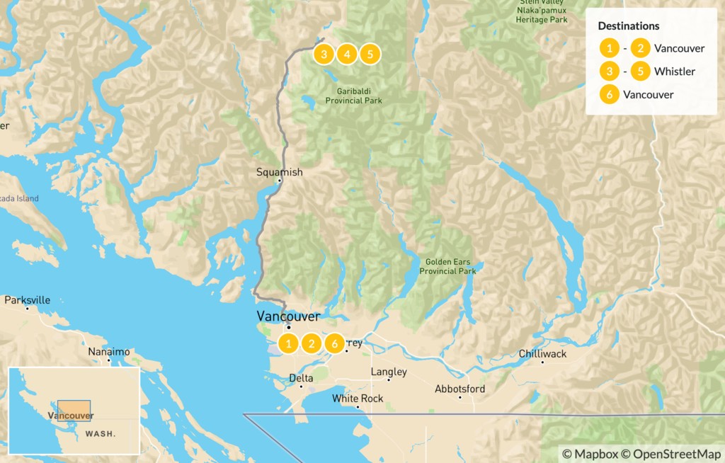 | Day 6 | Whistler to Vancouver (2 hours) | Vancouver |
