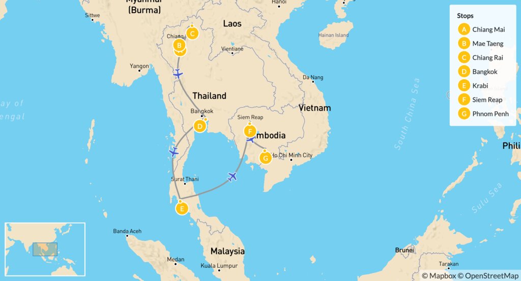 Map of Secrets of Thailand & Cambodia – 21 Days