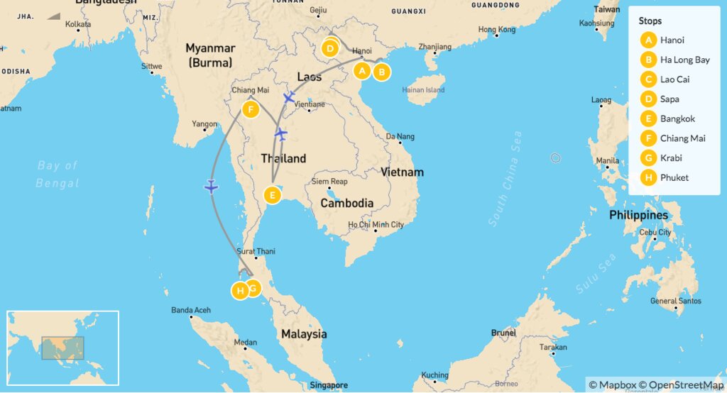 Map of Secrets of Vietnam & Thailand – 14 Days