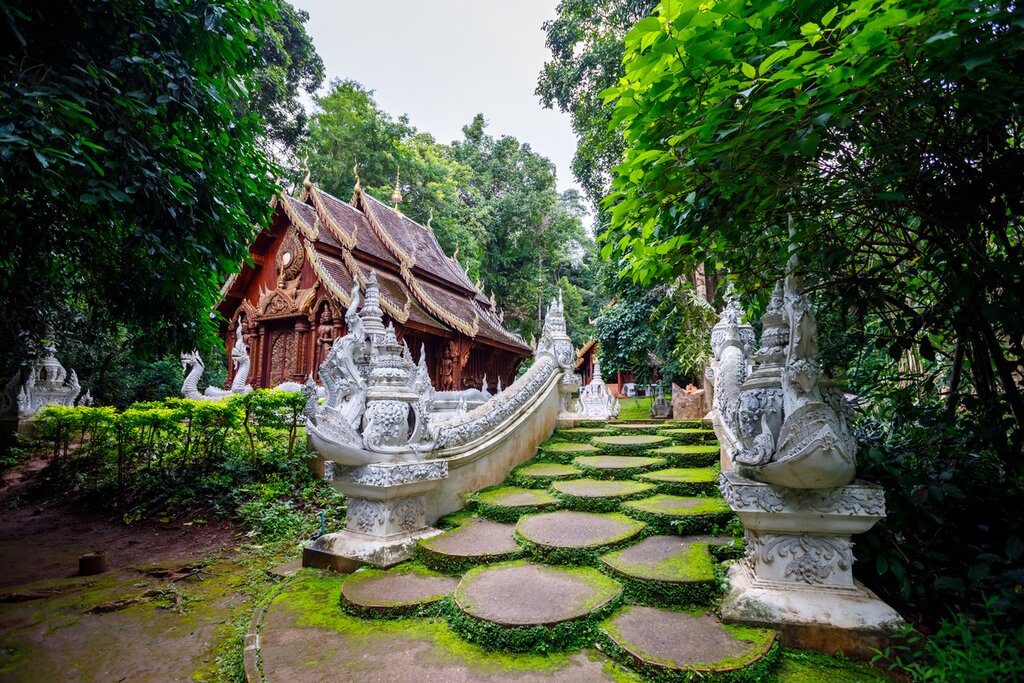 Head out of the city today to experience northern Thailand’s lesser-known temples and crashing waterfalls. Travel in a 4WD along bumpy roads into lush forest, passing isolated villages. Eventually, you’ll reach Wat Luang Khun Win, an 800-year-old, Lanna-style wooden temple nestled in the dense jungle.