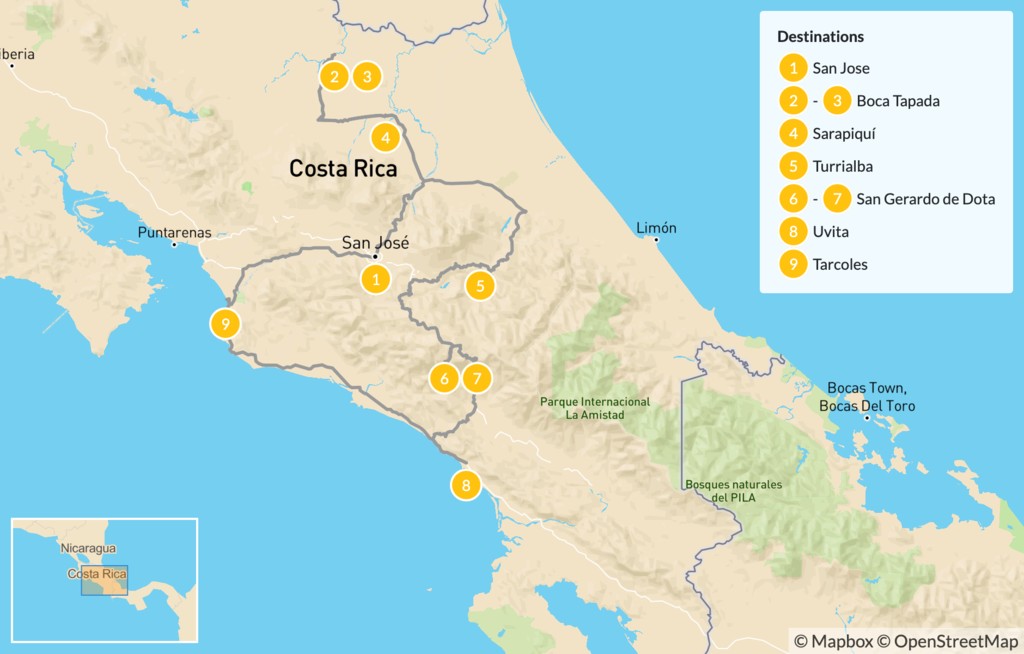 | Day 1 | Arrival in Costa Rica – Experience San José’s Culture | San Jose |