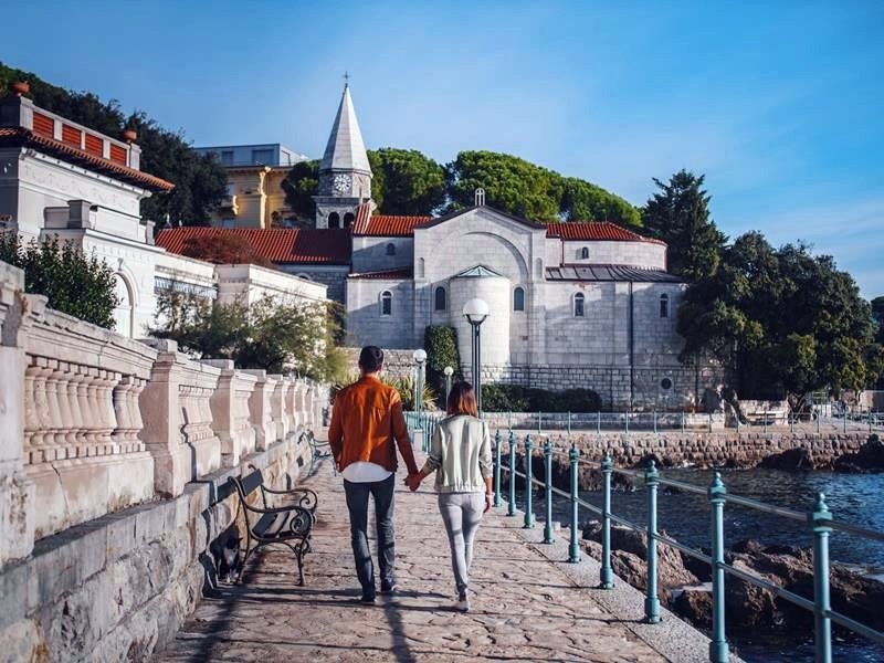 After breakfast, head towards Opatija, Austrian aristocracy’s favorite seaside resort prior to the 20th century. Walk along the seaside promenade to stretch your legs and admire the glamorous hotels and villas. Grab some coffee before hopping back into the car and continuing your drive across the Istrian peninsula to Grožnjan.