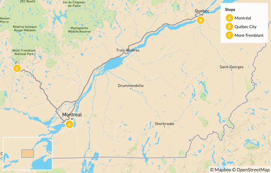 Map of Self-Drive Eastern Canada: Montréal, Québec City & Mont-Tremblant – 7 Days