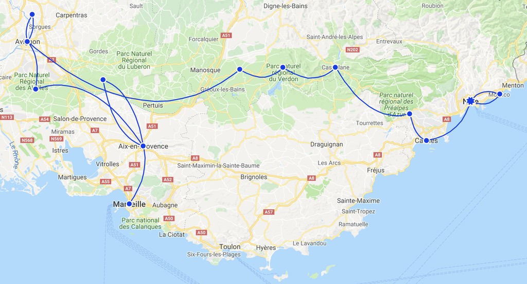 Map of Self-Drive France: Provence & the French Riviera – 10 Days