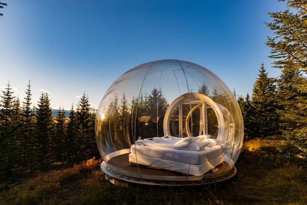 After spending a couple of hours on the road, you’ll turn off the main highway and travel into the wilderness, where your overnight accommodation awaits. To say this lodging is unorthodox would be an understatement. You’ll be staying in a large, igloo-like bubble, fully transparent and offering 360-degree views of the surrounding wilderness. Equipped only with a large bed, it’s the perfect spot to kick back, relax, and stare up at the stars twinkling in the sky. And if you’re here from September through to April, you’ll stand a great chance of seeing the famous aurora borealis (northern lights)— so don’t forget your camera!