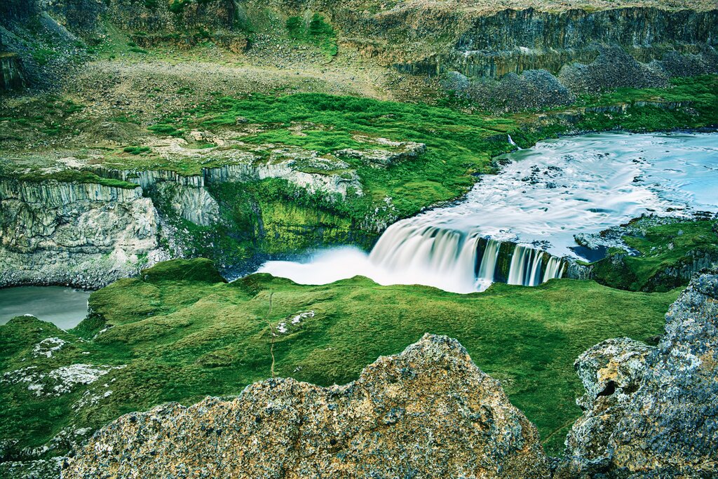 Today’s drive takes you to the north of Iceland and Lake Mývatn. This is one of the stops on the Diamond Circle, a 155-mile (250-km) circuit that passes the most incredible geothermal sites on this side of the country. Head first to Stuðlagil Canyon, where a stunning blue glacial river flows between sheer walls of polygonal basalt columns. Nearby is Dettifoss, Europe’s most powerful cascade. You can drive between the two waterfalls or hike atop the ravine.