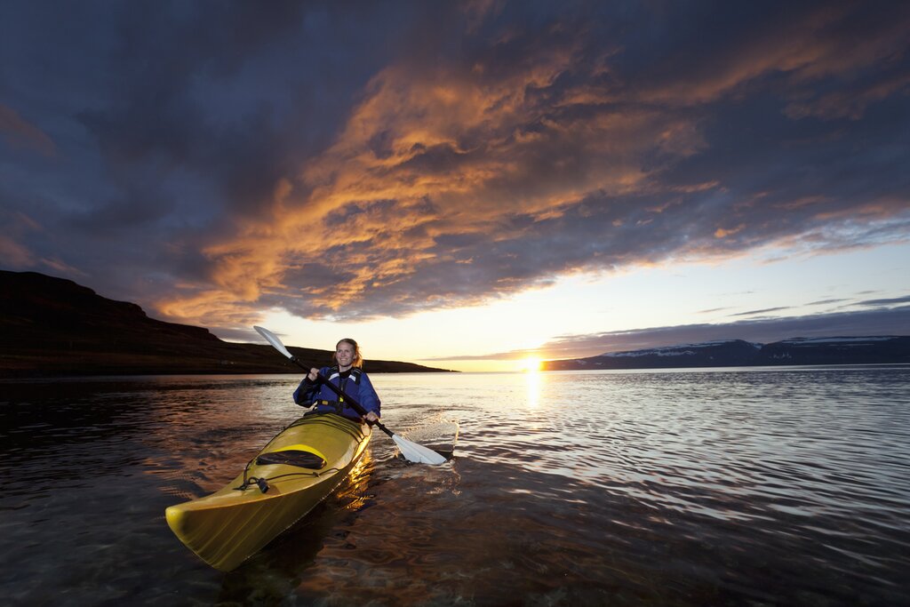 Then, continue to the historic fishing village of Ísafjörður, where you’ll overnight. On the way, you can stop at the Arctic Fox Centre in Súðavík to learn about the only terrestrial mammal native to Iceland and meet orphaned foxes. Once in Ísafjörður, you’ll head to the waterfront, meet a guide, and commence a three-hour kayak ride along the fjord. As you cruise the coast, you’ll be treated to magnificent views of the town and surrounding mountains. Plus, you can spot seals and endemic bird species like oystercatchers, elder ducks, Arctic terns, and more.