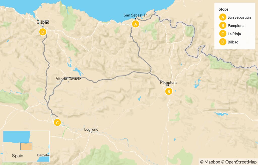 Map of Self-Drive in Basque Country, La Rioja & Navarra – 7 Days