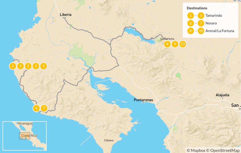 Welcome to Costa Rica! Liberia is the northern hub of Guanacaste Province, an area famous for both its Pacific beaches and inland mountainous regions. You’ll get to experience all of it on this self-driving Costa Rican road trip.