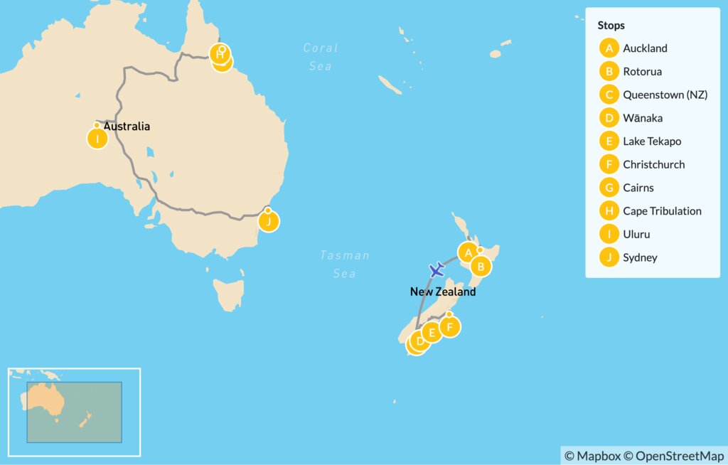 Map of Self-Drive New Zealand & Australia – 15 Days
