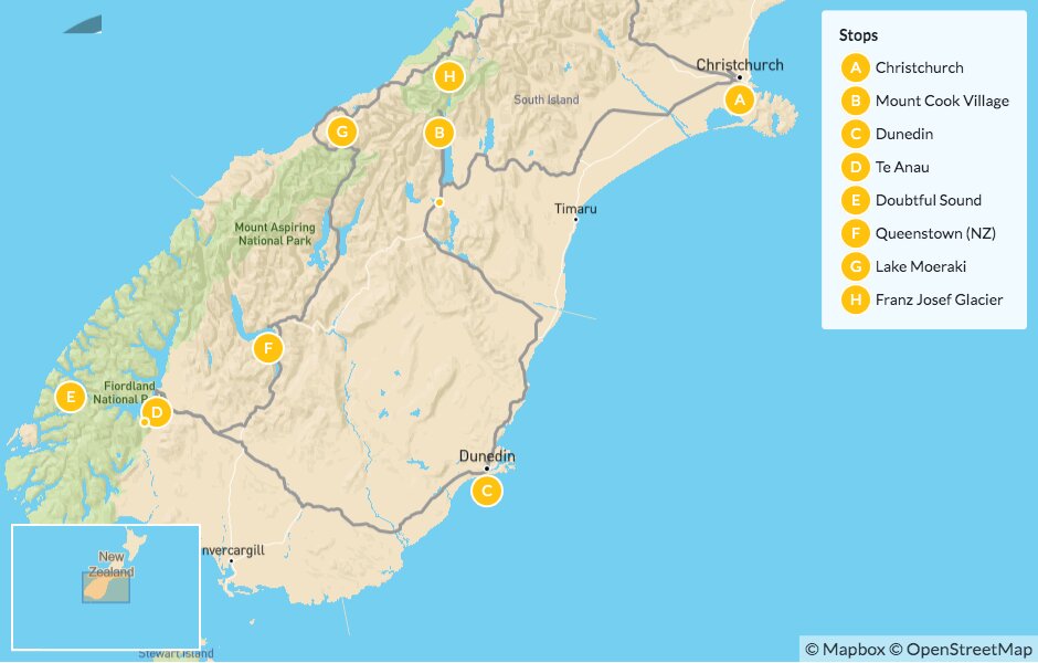 Map of Self-Drive New Zealand: South Island Food & Nature Adventure – 13 Days