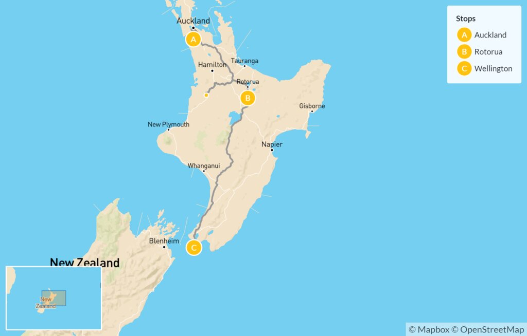 Map of Self-Drive New Zealand: The North Island Bucket List – 8 Days