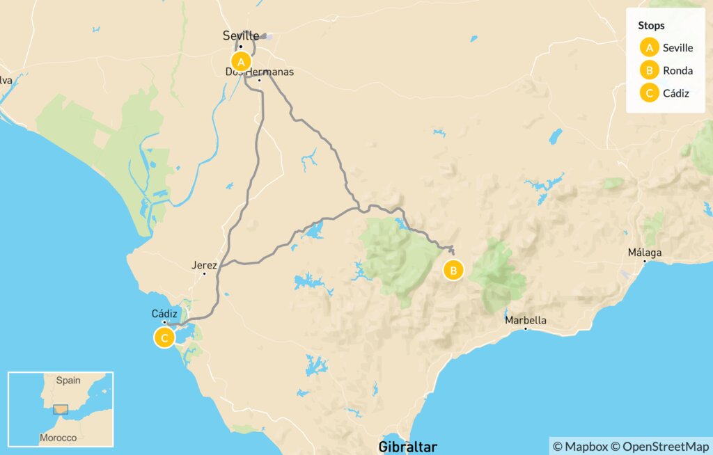 Map of Self-Drive: Seville, Cádiz & the White Villages of Andalusia – 7 Days