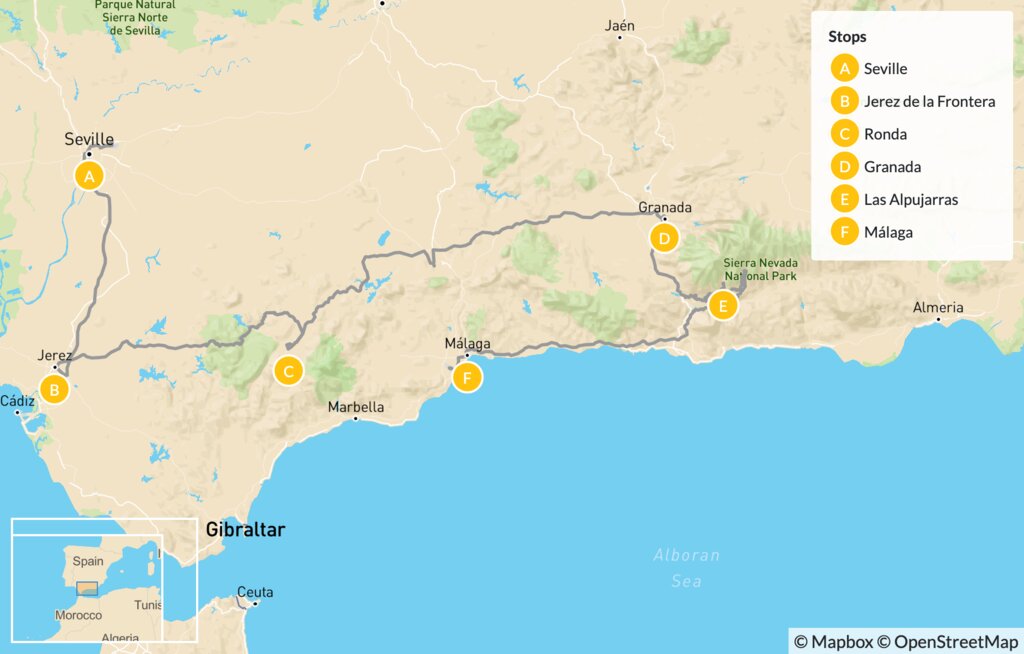 Map of Seville & Hidden Corners of Andalusia Road Trip – 10 Days