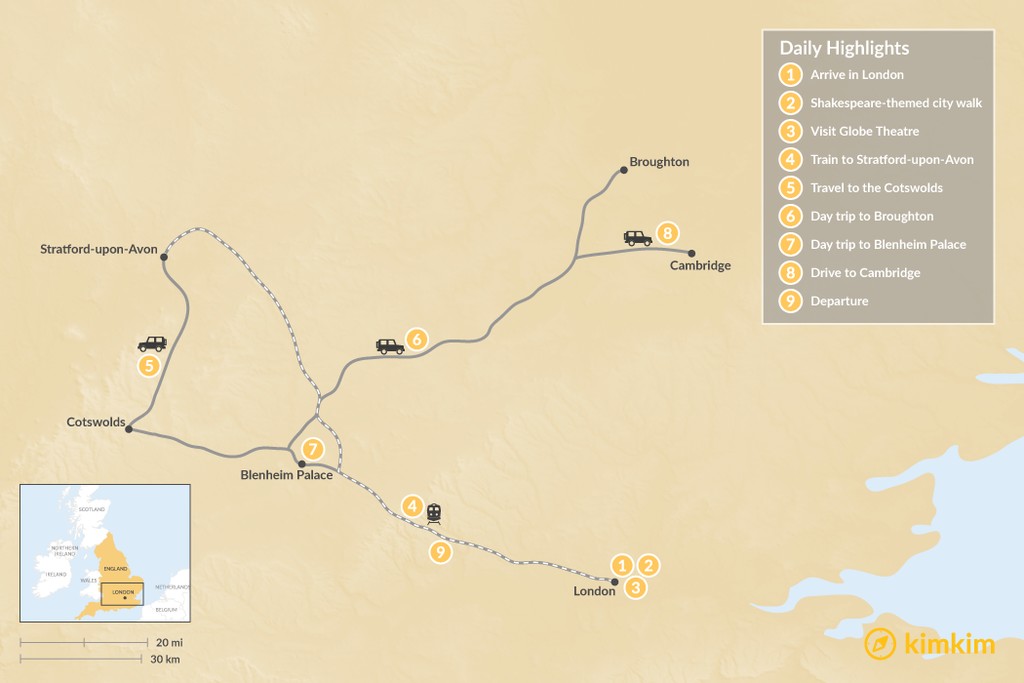 | Day 4 | Train to Stratford-upon-Avon | Stratford-upon-Avon |