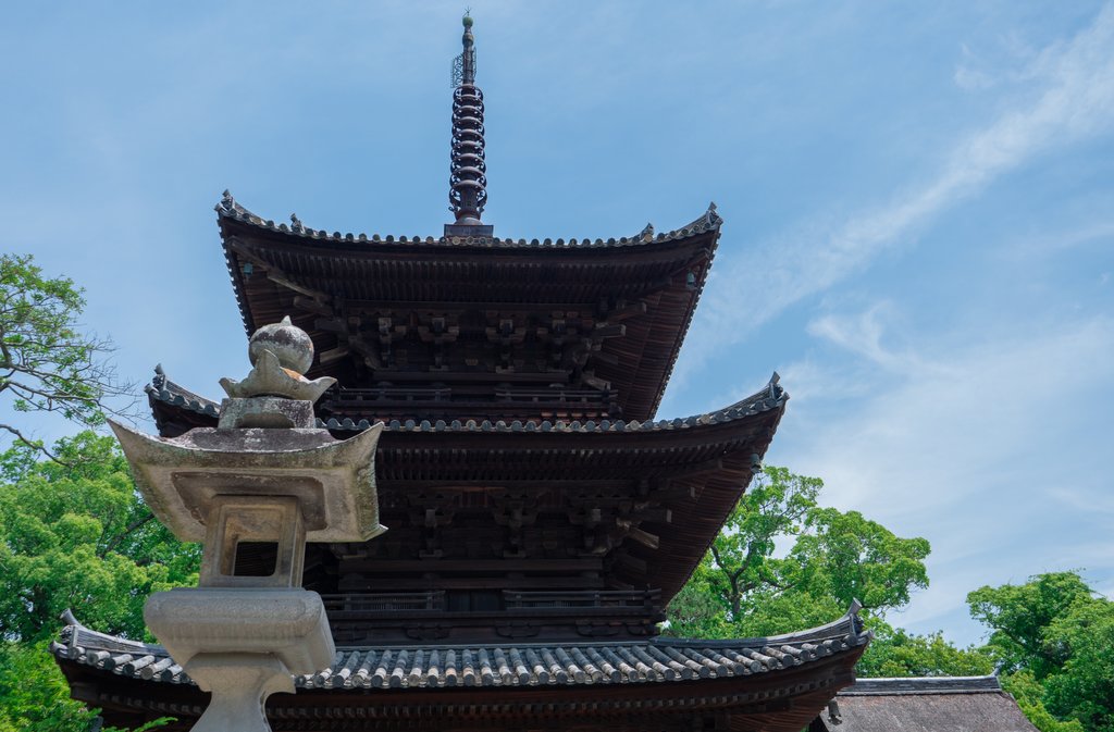 Leaving Tokushima, you’ll travel by bus and prepaid taxi to northern Kagawa Prefecture. This rewarding hike will take you past lovely scenery and allow you to visit three temples: Temple 82, Negoro-ji, Temple 81, Shiromine-ji, and Temple 80, Kokubun-ji. After your hike, you’ll travel by train to the old hot spring town of Kotohira Spa, where you’ll spend the night.