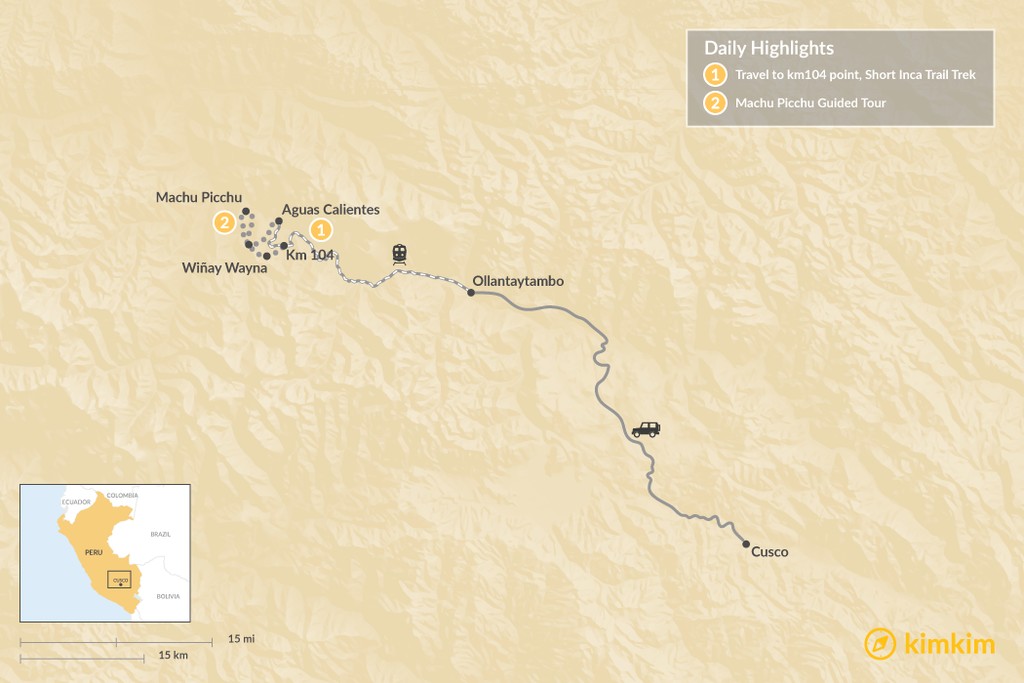 Map of Short Inca Trail to Machu Picchu – 2 Days