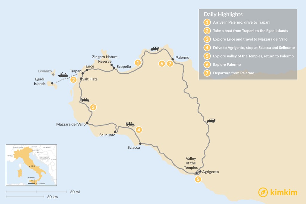 Map of Sicily’s West Coast in 7 Days: Fishing Villages, Wineries & Archaeology