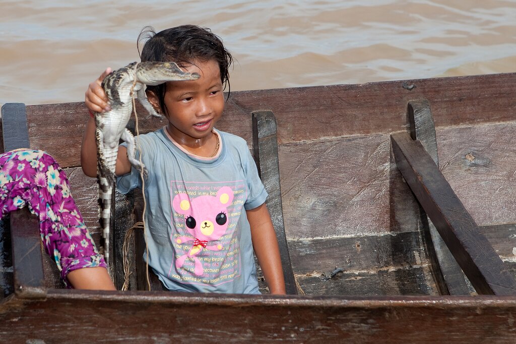 This morning, board a boat (July-December) to cruise downriver to Tonlé Sap Lake, then up the Sangker River to Battambang. On this long, scenic journey, you’ll pass many “floating” villages populated by Cham Vietnamese-Cambodians along the riverbanks—a chance to witness traditional rural life close up as fishers pull in their nets and canoes paddled by women act as mobile markets. Here, everything from the mosque to fish farms and homes floats with the seasonal water level. You’ll journey through the wildlife-rich wetlands of Tonlé Sap Biosphere Reserve, offering sightings of crocodiles and birds.