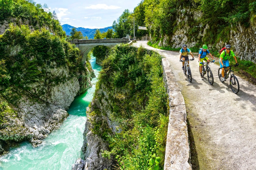The tour then comes to the lowest elevation in Triglav National Park—the Tolmin Gorge. If you’re up to it, take a break to explore this enchanting natural wonder before riding on to the town of Tolmin.