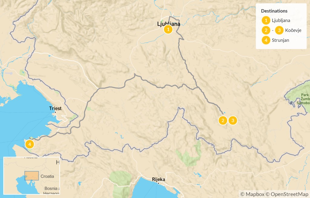 From there, you’ll transfer the 20 minutes to a sprawling campground on the outskirts of Kočevje, where you will spend the evening in glamping comfort.