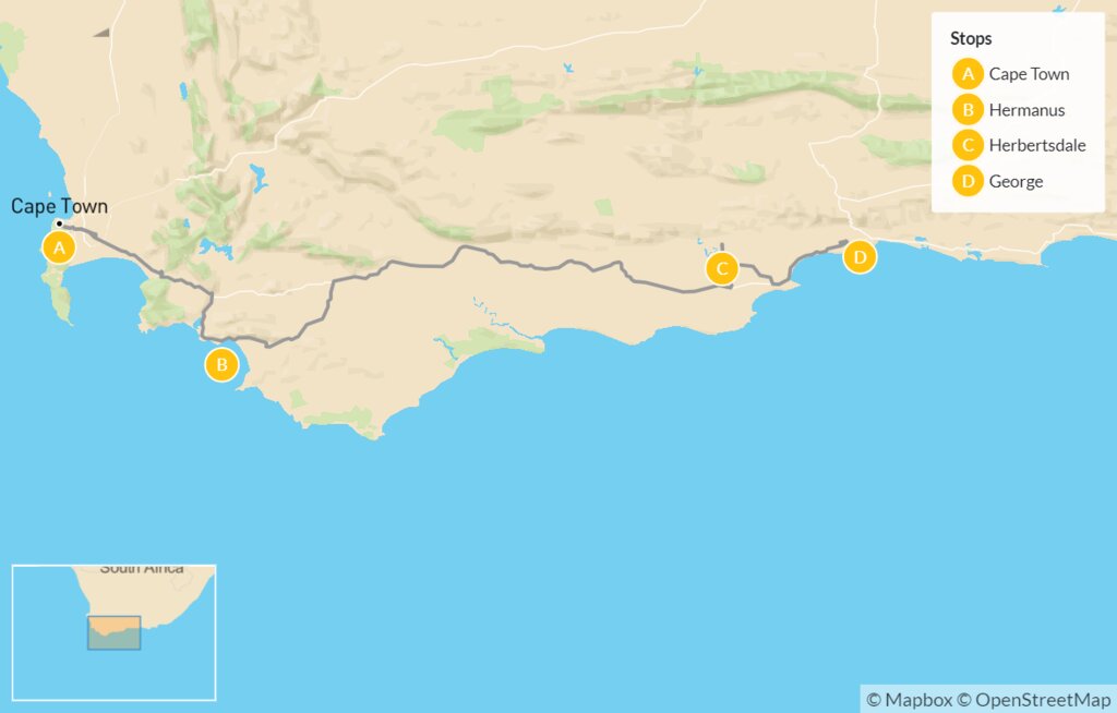| Day 4 | Drive to Hermanus, Explore | Hermanus |