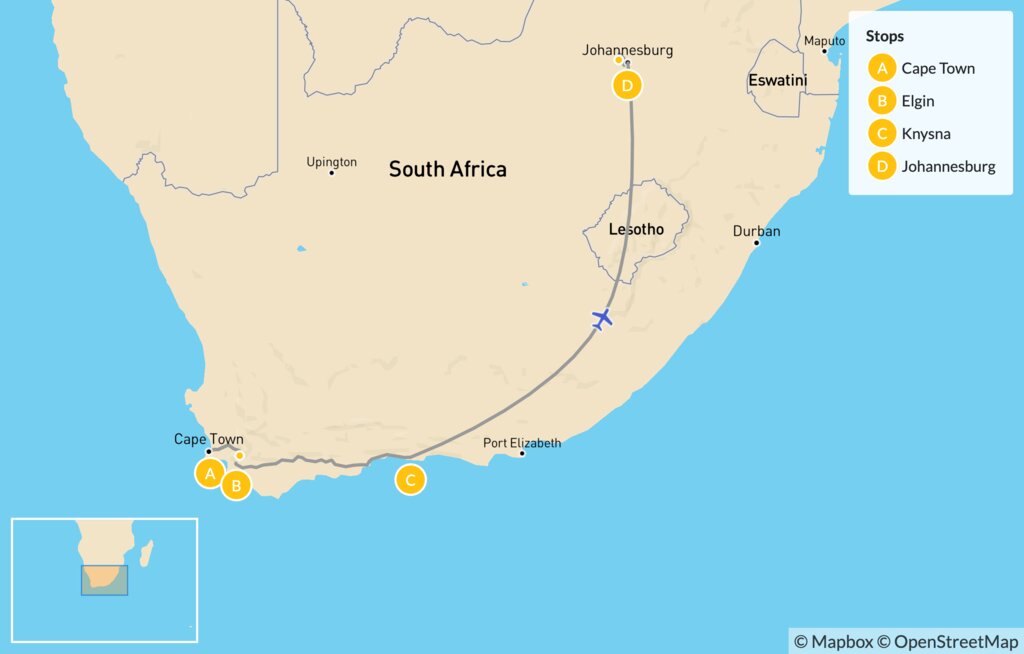 Map of South Africa Food & Wine Tour: Cape Town, Garden Route & Johannesburg – 11 Days