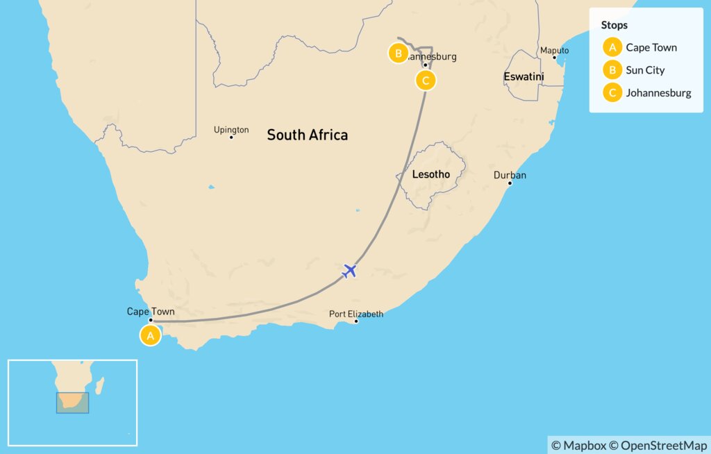 Map of South Africa for Families: Cape Town, Sun City & Johannesburg – 7 Days