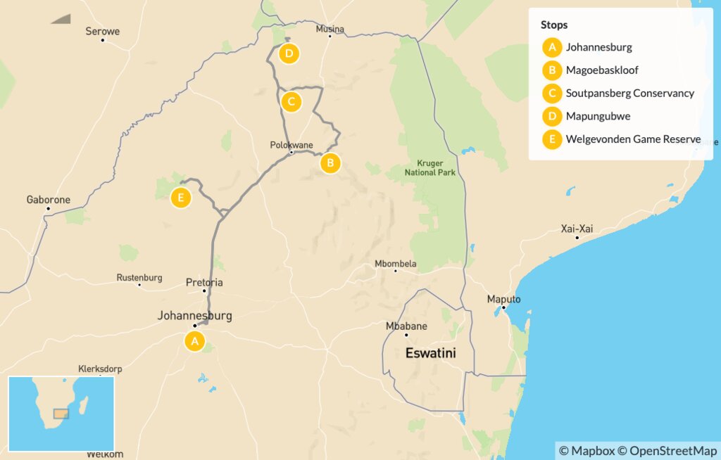Map of South Africa Off-the-Beaten-Track Safari – 10 Days