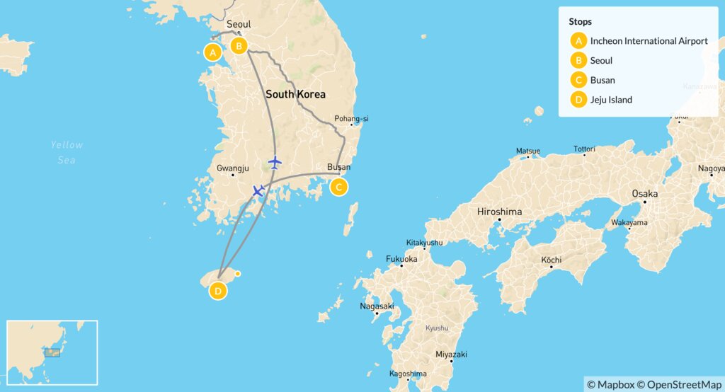 Map of South Korea Culinary Adventure: Seoul, Busan & Jeju – 7 Days