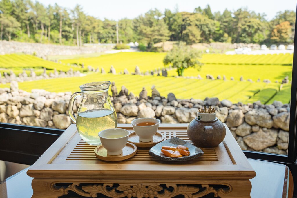 Continue to the verdant Osulloc Green Tea Plantation, where you’ll walk the rows of fragrant tea bushes, admiring Jeju’s largest green tea grower before popping into the Green Tea Museum to taste a piping hot brew and learn more about the harvesting process. Your next stop is the Arte Museum, an immersive media art exhibition that transports visitors to another world through visual displays, sound, and fragrance. Wrap up the day with a grand finale at Aewol Café Street, known for quaint cafés, delicious abalone restaurants, and beautiful sunsets.