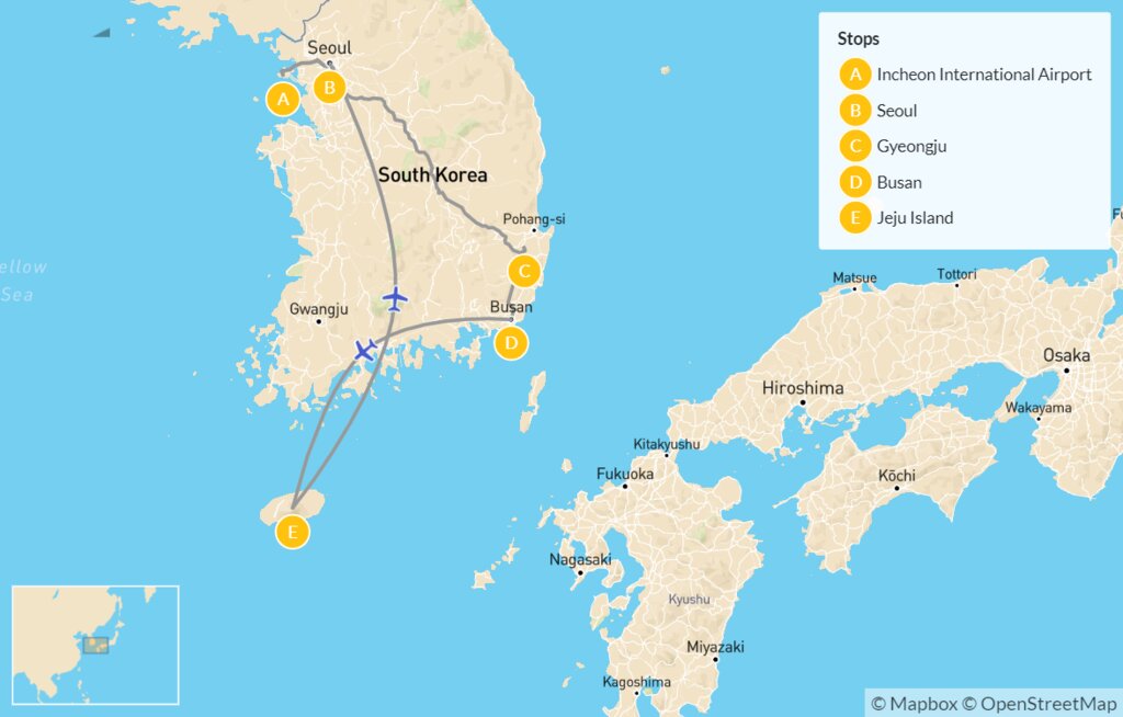 Map of South Korea Family Adventure: Palaces, Volcanoes, Theme Parks & Street Food – 14 Days