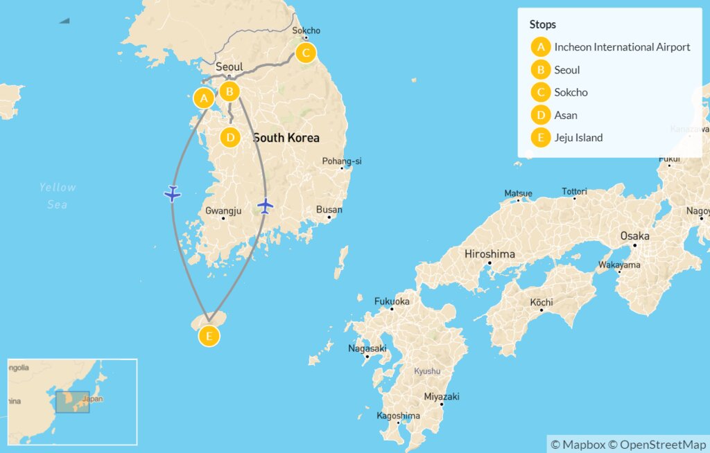 Map of South Korea Winter Escape: Mountains, Islands & Hot Springs – 10 Days