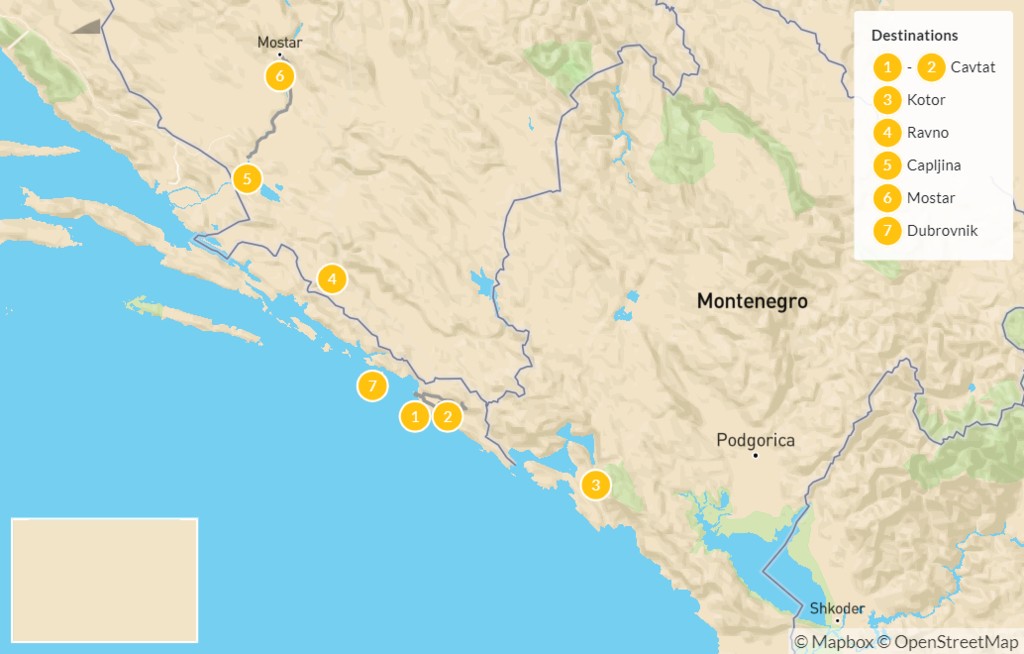 Map of Southeastern Europe Multisport: Croatia, Montenegro, & Bosnia and Herzegovina – 8 Days