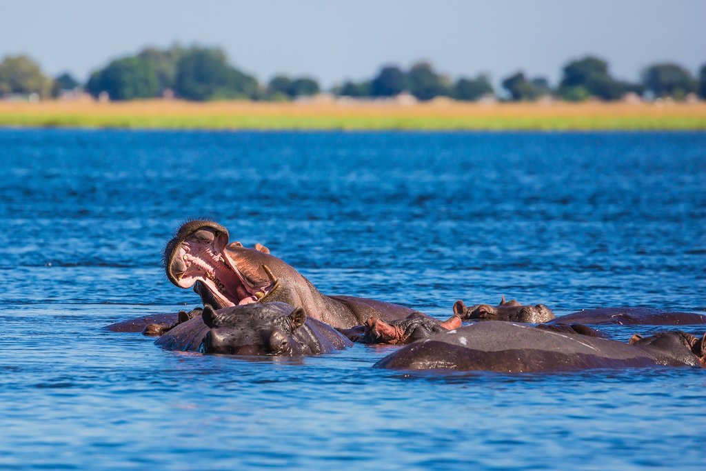 The Chobe Riverfront is a popular destination with travelers. Safari boats travel along the river, giving guests unparalleled looks at the vast herds of elephants on the banks. By mid-morning, zebra and a variety of antelope replace the elephants. In the afternoons, massive herds of several thousand cape buffalo congregate on the riverfront. Where there are buffalo, there are predators, so look out for lions, leopards, and hyenas in action. In the water, large pods of hippos gather along the shore while African fish eagles fly over the river, hunting for their next meal.