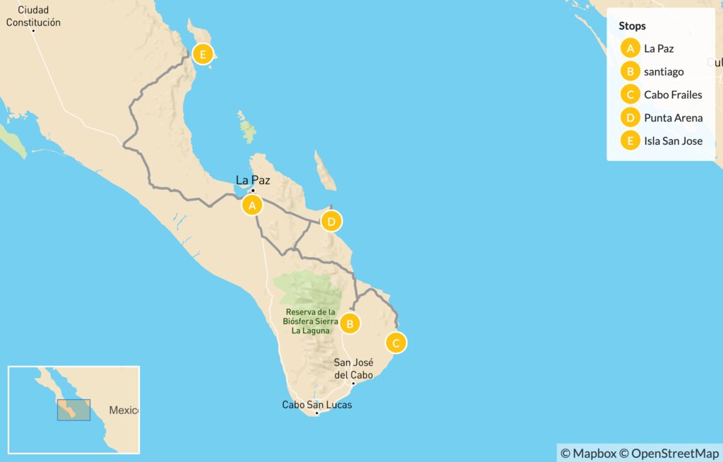 Map of Southern Baja California: Sea of Cortez Adventure – 9 Days
