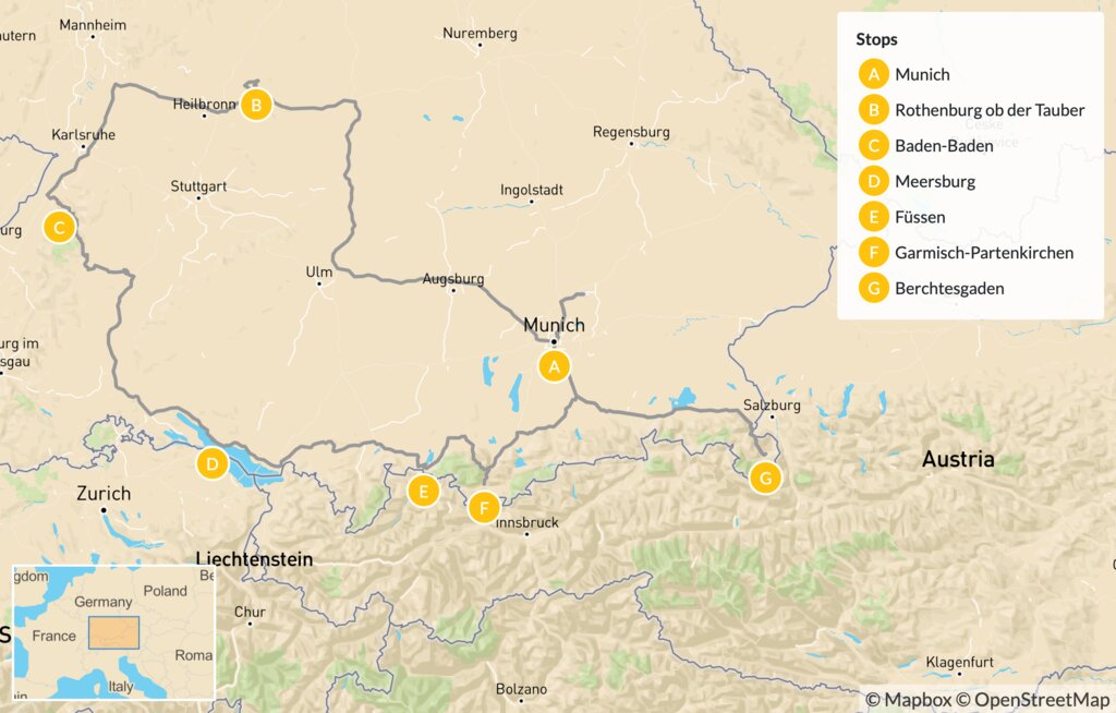 Map of Southern Germany Road Trip: Bavaria, the Black Forest & Lake Constance – 14 Days