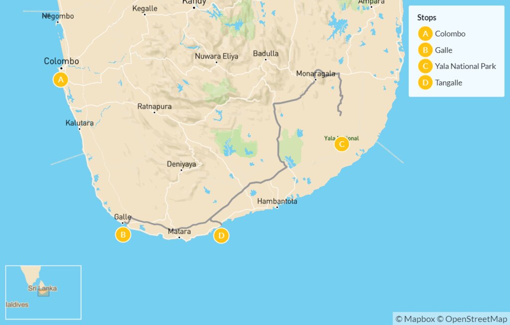 Map of Southern Sri Lanka Getaway: Galle, Yala & Tangalle – 5 Days