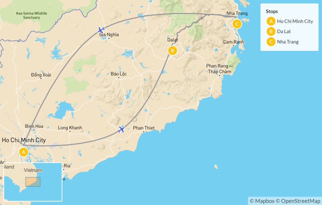 Map of Southern Vietnam Family Adventure – 10 Days