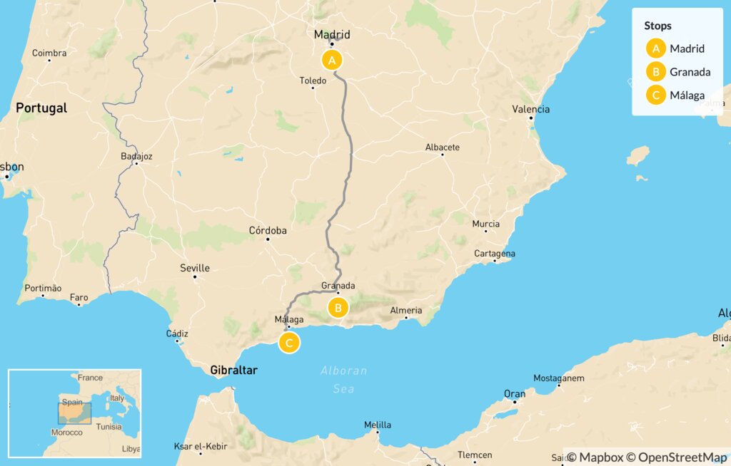 Map of Spain Family Trip: Madrid to Málaga – 10 Days