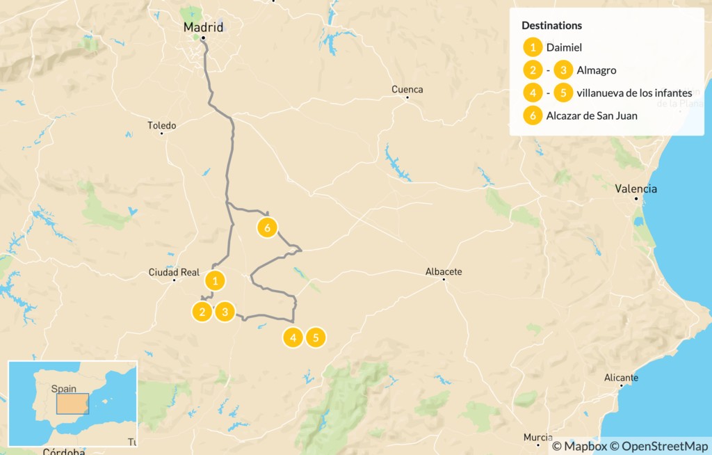 Map of Spain Off-the-Beaten-Path Road Trip: Madrid to La Mancha – 7 days